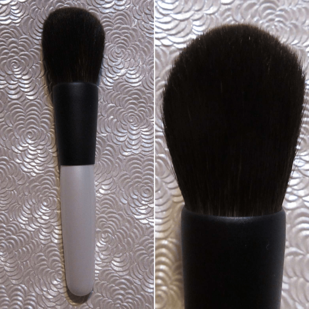 I make sure to start wherever I want powder to be applied most concentrated and press that part of the brush to my skin and then drag the brush along that angle in long sweeps. Because this brush is not dense, I get an airy looking application. I can use this with pigmented bronzers to apply product lightly. I can use this to build up blush. However, I’ve been using it mostly to apply face powder for products that need to be set down. The sokoho hair within this brush is good for that, though it might be tough on the grey squirrel strands long term. It’s a risk I’m willing to take since it wasn’t expensive and I enjoy the softness of this brush.