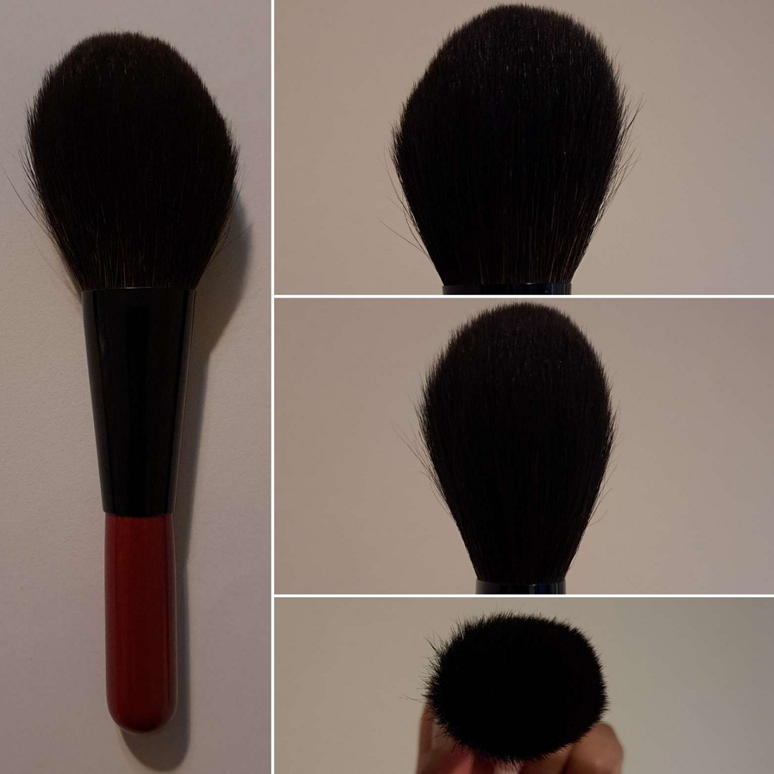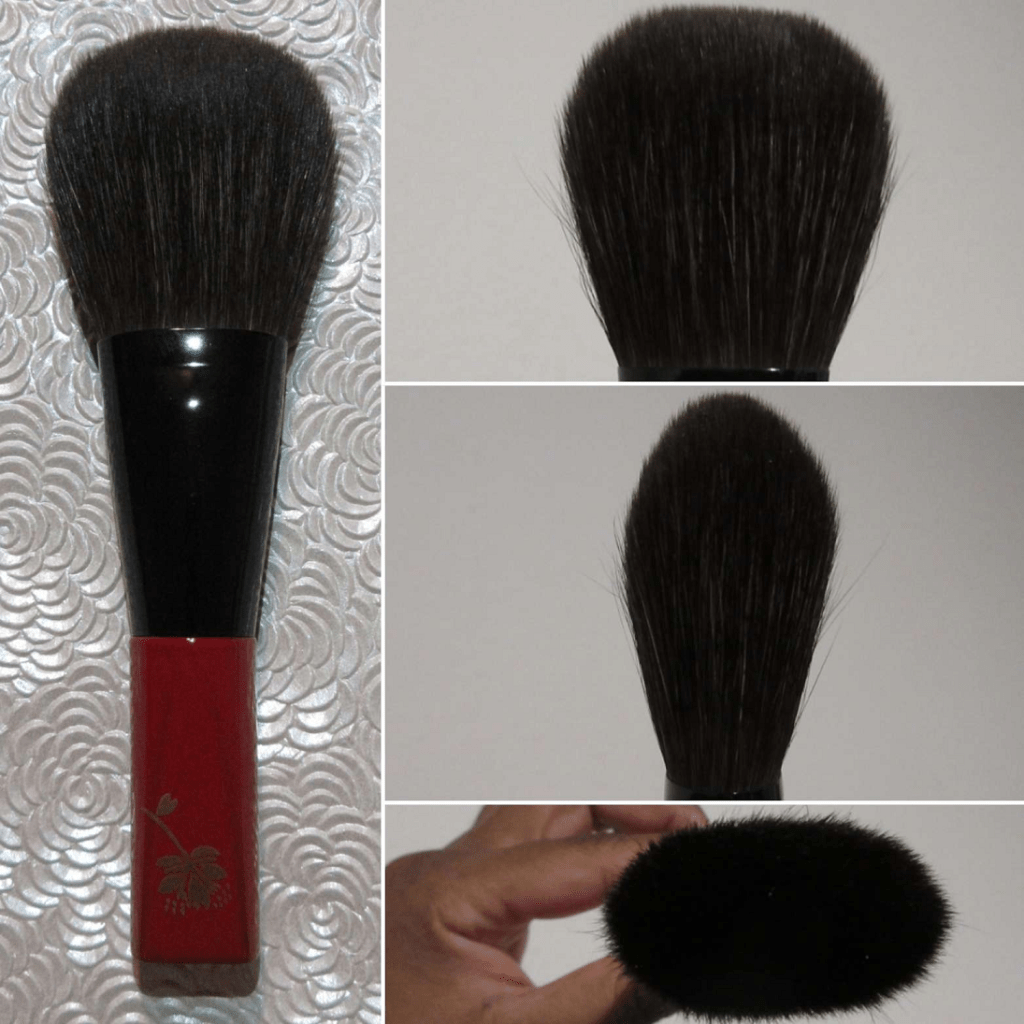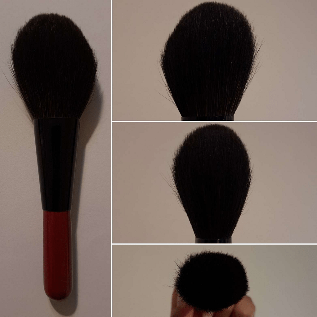The hair feels super silky. There’s enough hair to understand it being expensive (though I believe the majority of that is for the maki-e handle), but it’s not as full as I expected or hoped. It’s not dense. It has a light airy feeling to it and is luxurious when used across the skin. In my opinion, this is an “experience” and “for show” brush more than an everyday one for practical usage. That’s just my opinion considering how delicate the hairs are and my makeup needs. I’m absolutely happy to own it, but I could never recommend it, except to those for whom price is no issue.