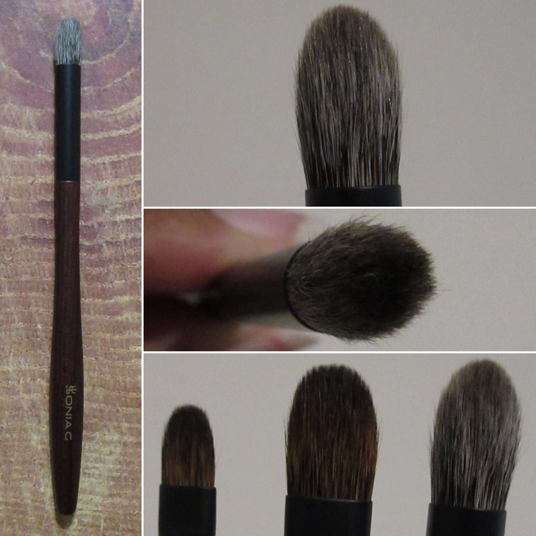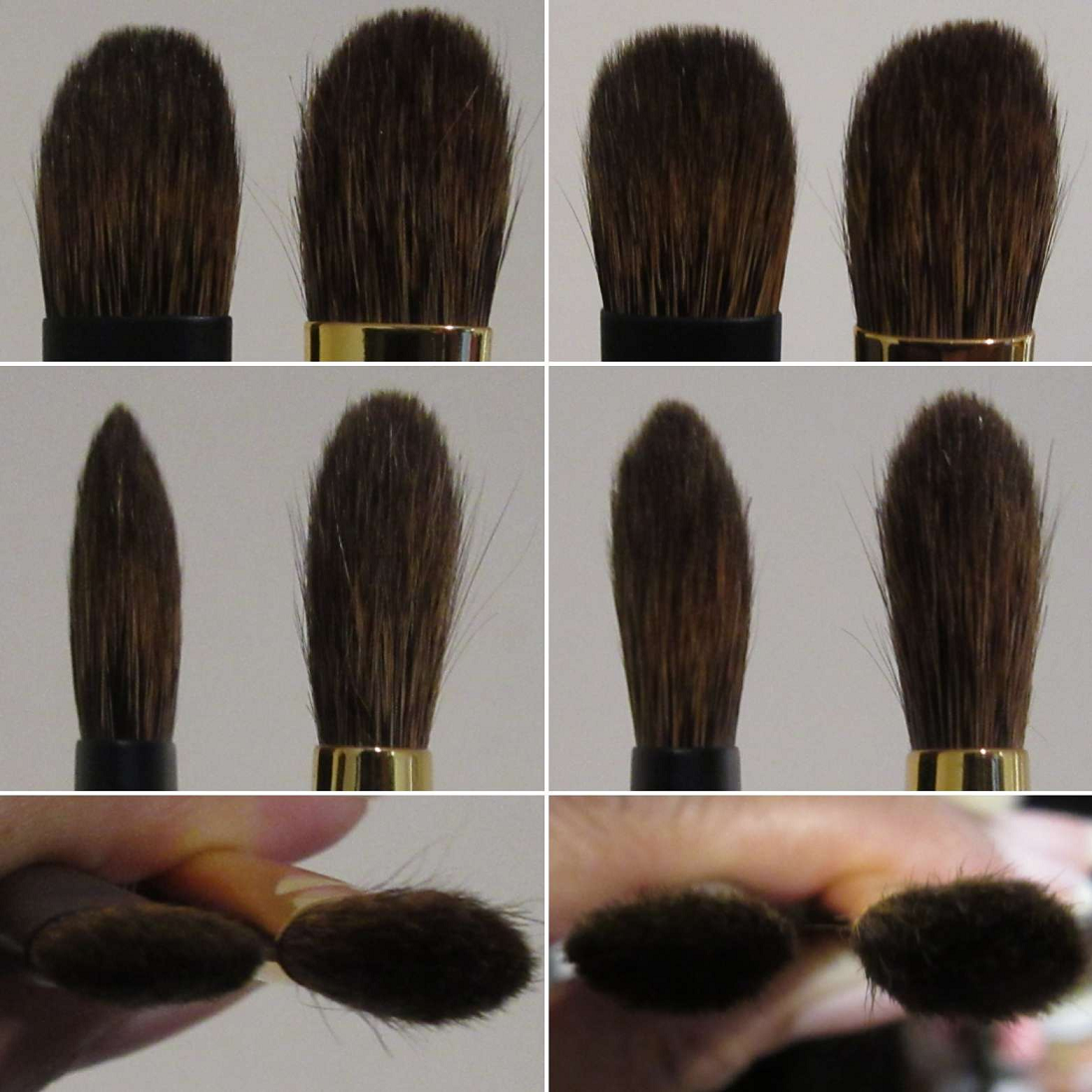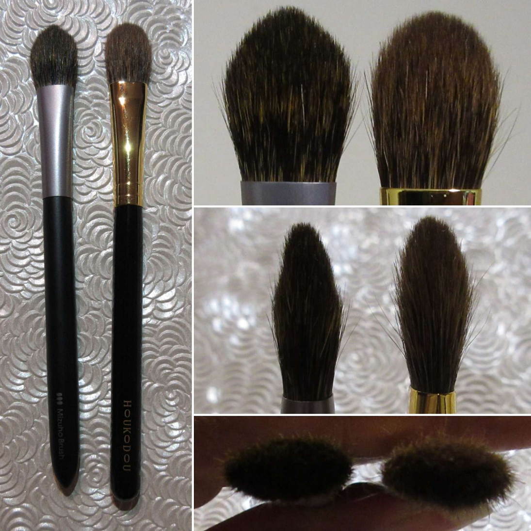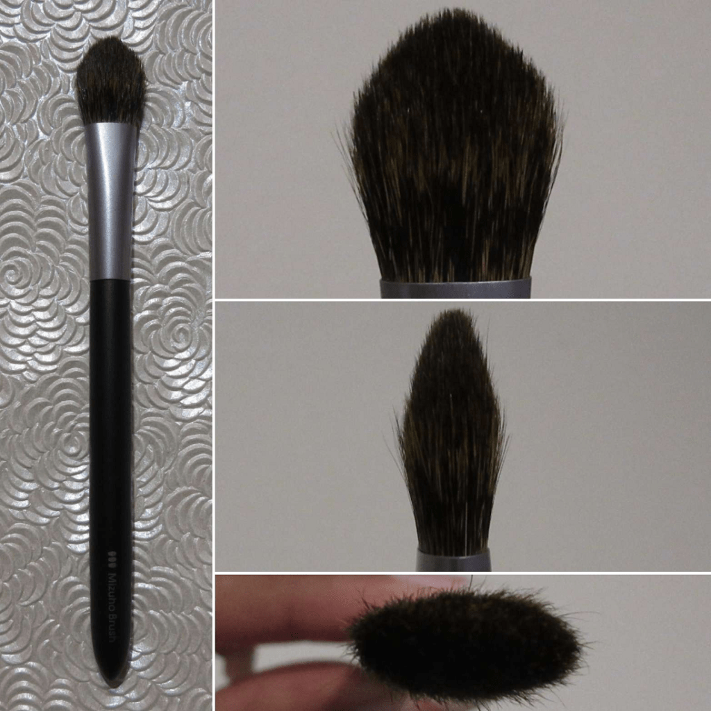 Because of the pointed tip, it reminds me of the Mizuho MB120, but this brush is much firmer and applies product more precisely and more concentrated.