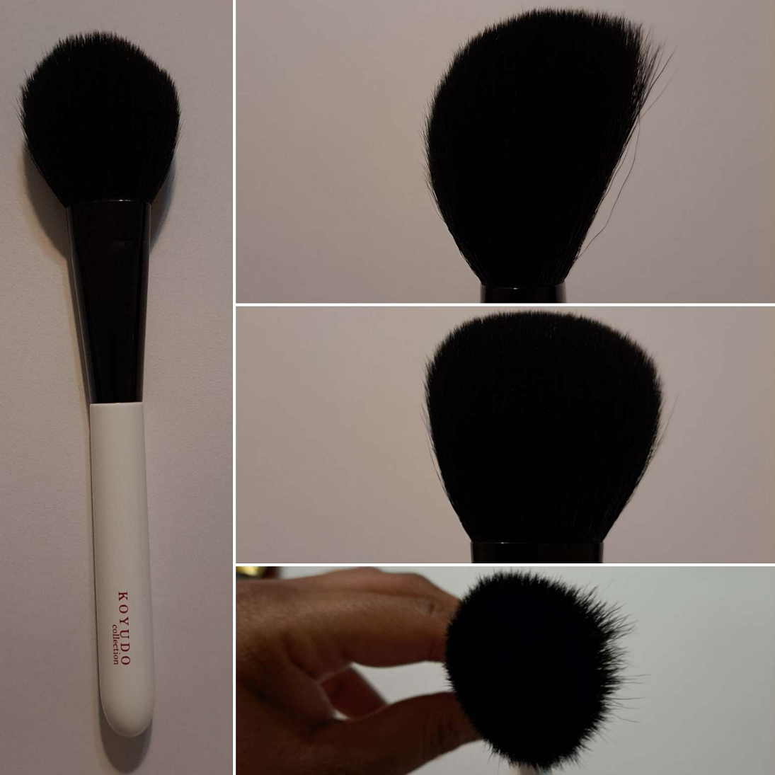 The hair blend reminded me instantly of Koyudo’s discontinued Premium Series, which I was unable to ever purchase, so that prompted me to want to buy this one. It is such a beautiful brush with the shiny lacquer black handles. I believe the labeled version of this brush is called the Koyudo Monochrome Cheek Brush and came in black and white handle versions via the Fude Beauty website. I’m not sure why CDJapan only had unlabeled ones (that still came in a black Koyudo box), especially for the same price as the ones from Fude Beauty. In any case, I still preferred being able to buy this beauty from CDJapan because of points I had accumulated there.