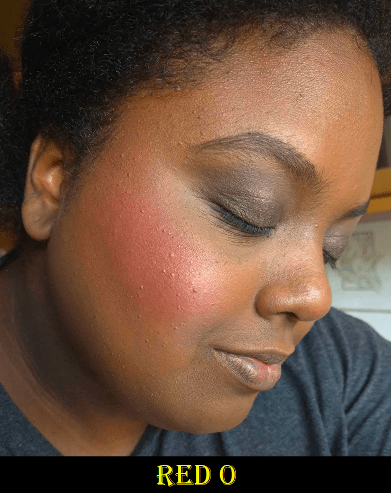 DESERT FLUSH – A dark medium muted option! Hurray! Thank goodness this blush is one solid color combining “deep beige” with “peach”, because this is already on the cusp of what should be included in this palette in terms of depth (not in terms of color because a peach was absolutely needed in the line). It’s a buildable shade that shows up on me, but I have to use my dense brushes to pack on the color so I can wear it on its own. One such brush is the Sonia G Cheek Pro. In winter-spring, this color should be easier to wear. In any case, I find this shade useful to tone down or pair with Red 0. I am sometimes in the mood for a light blush, but this is pushing the limits of what I’d feel comfortable wearing in public by itself. I foresee myself combining this with other blushes from other brands.