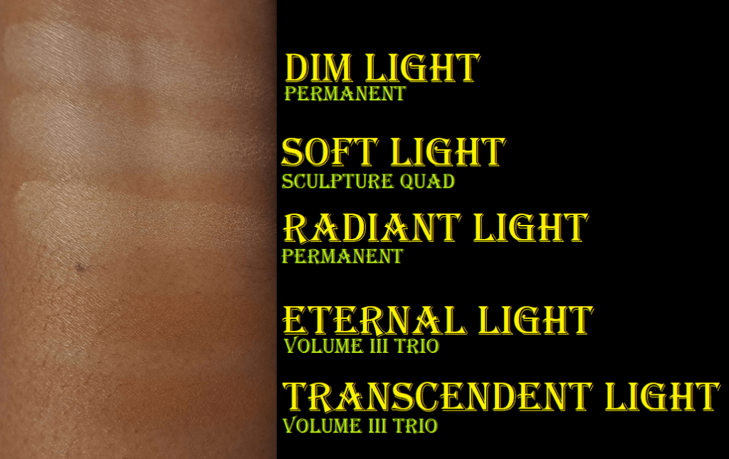 Eternal Light (without the larger random shimmer particles) is the best finishing powder option despite it being a little darker than my skintone, so I just use it sparingly.