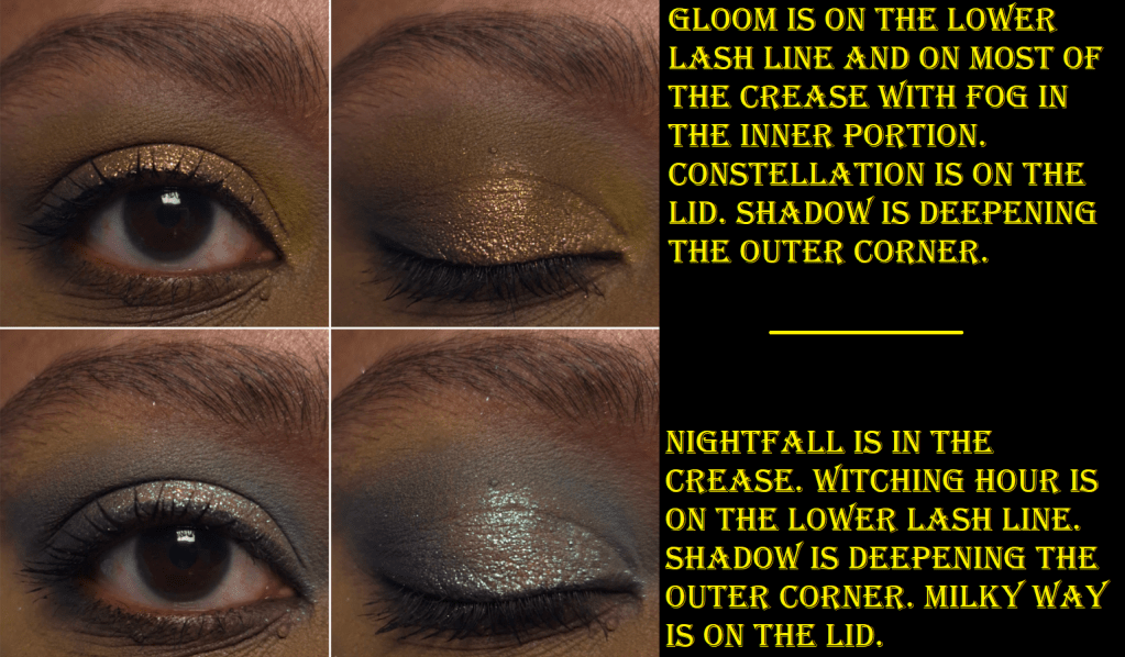 I’m proud of the first and fifth eye looks. They are the most eye-catching to me, but Constellation is actually my favorite eyeshadow in this palette.