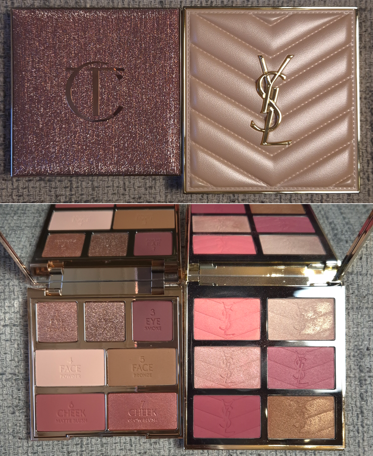 The YSL All Hours Couture Palette in Golden Oasis still feels new to me, so it’s natural to want to compare these two products. In USD, YSL’s face palette contains three blushes and three highlighters for $85. Charlotte’s face palette contains three eyeshadows, two blushes, one face powder and one bronzer for $69. The differences in Germany were much smaller as it’s €72 for YSL and €69 for the Charlotte Tilbury palette. I essentially liked half of the YSL palette, but would only really use two blushes (and I already owned one of those two). With the Charlotte Tilbury palette, I can use everything in multiple ways and I like all of the shades. I can finish a good portion of my makeup by whipping out this single palette. I like it more than the YSL and more than the Nars Hot Escape Cheek Palette. I still stand by my thoughts that the ones from YSL and Nars could be good in particular circumstances, and what I actually paid for them was a pretty good deal. This one just turned out to be even better.