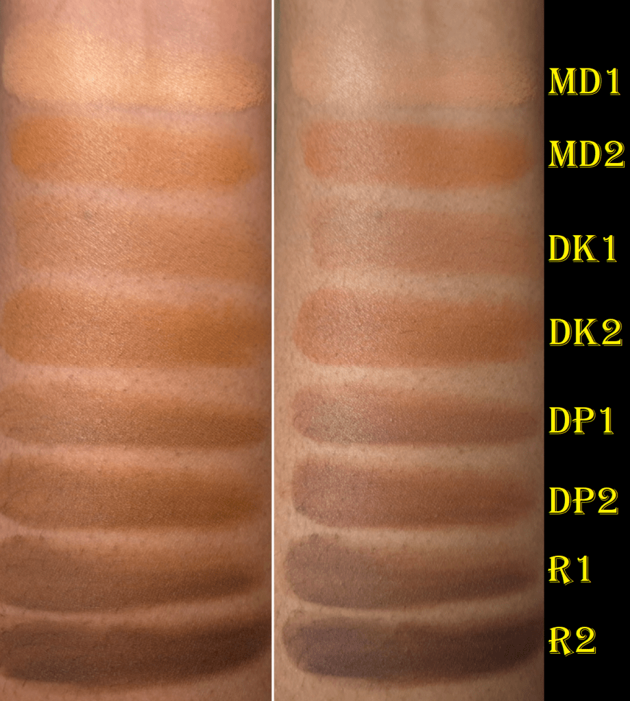 There is a shade called MD1.5 that was not part of the sample pack, but it’s available on the website. It is described as having a golden undertone, which sounds like it would be better for me than a peach or neutral that the majority of these medium dark to dark shades have. However, since MD1 was too light and MD2 was dark, There’s no way for me to know if MD 1.5 could still be too light, or if it could be perfect. I don’t usually buy brightening shades of concealer because it makes my under eye circles underneath look grey.