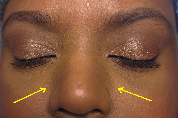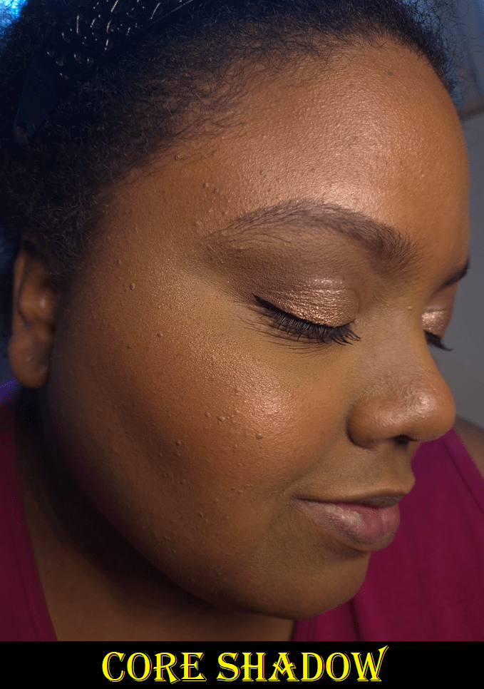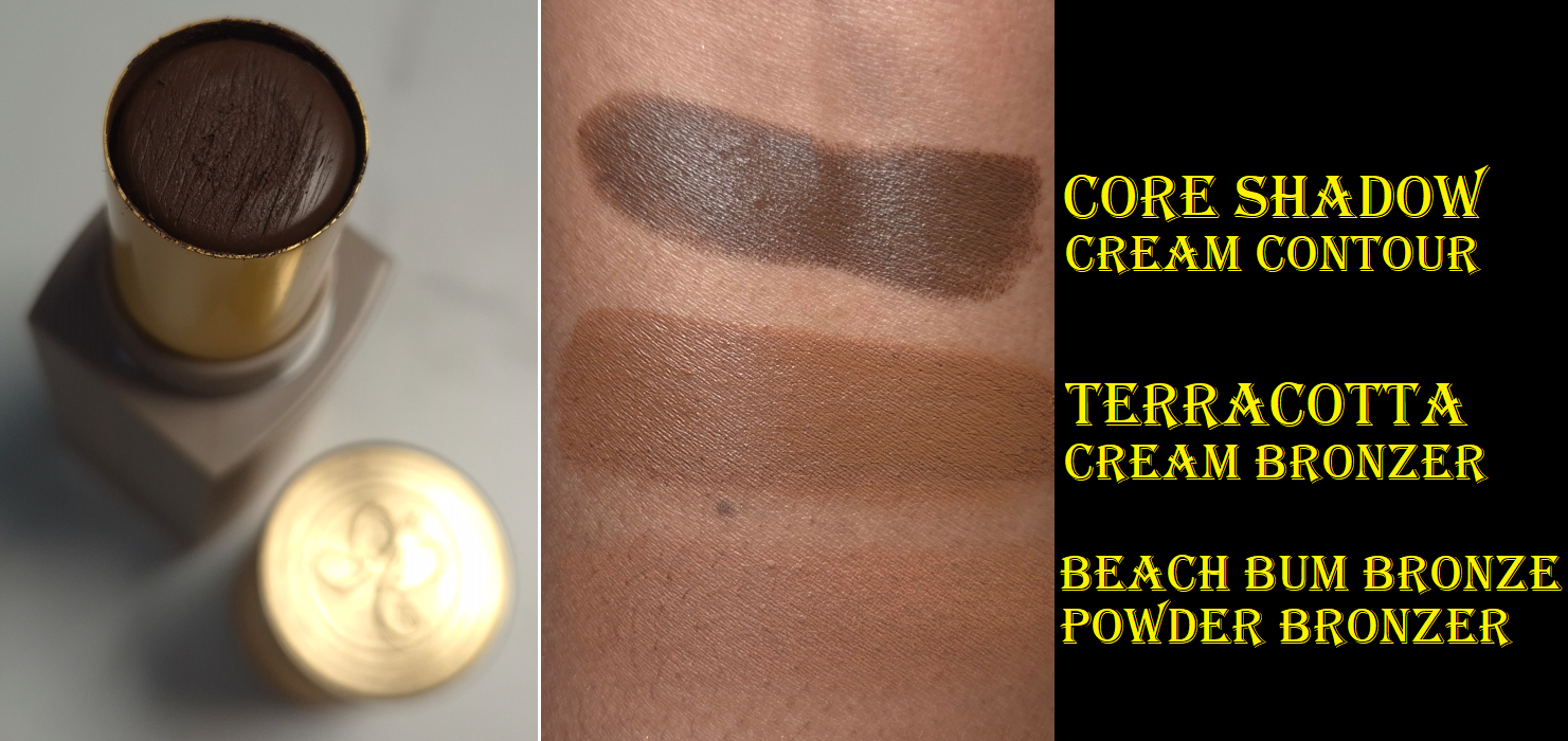 When I tried to take a photo of the contour below my cheekbone, it looked too natural. So, I drew on more product and left it unblended so it would be easier to see the sculpting power of the Core Shadow shade on my skin tone.