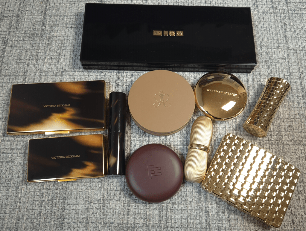 I still chose these PML products as the next heaviest in the luxury category, though I have to admit that I have some lightweight quads that look fancier because they are gold colored. For example, Tom Ford (the trim technically), Guerlain, YSL (trim), Prada (mixed gold and silver), Lisa Eldridge, etc.
