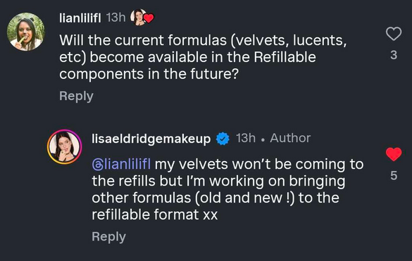It would be nice if I liked the lipstick formula more, but there is some hope for me! I wrote a comment on Instagram that the brand responded to, and while the Velvet formula won’t be put in the refillable form, there might still be the possibility of the Lucents that I enjoy so much!