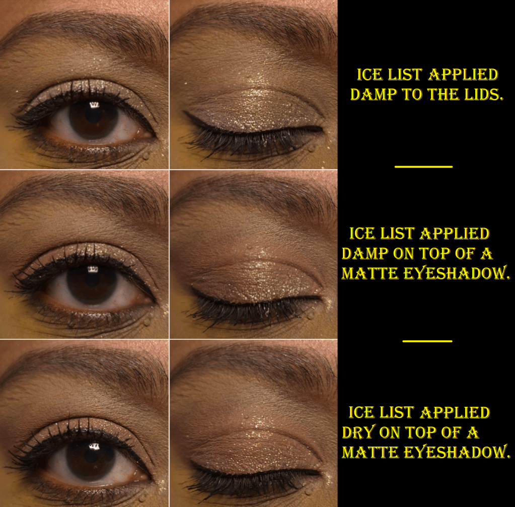 As someone who enjoys an interesting tactile experience combined with high performance, I was a little disappointed by how this felt. The results made up for it though. Ice List doesn’t look that impressive on me when I use it on my bare lids, but it really sings when paired with other eyeshadows!