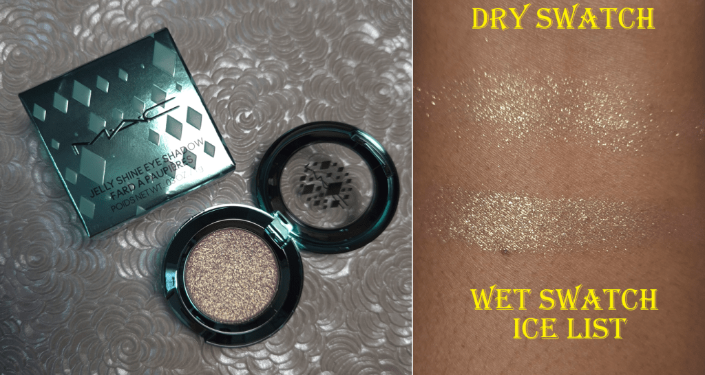 Based on the name alone, I was expecting a gel wet-feeling product. It’s supposed to have a “hybrid, jelly-like texture,” but the shimmer particles make it so that it feels dry to the touch with every swipe. I honestly would have called BS on the texture if I hadn’t been able to scrape the product out with my nail and then completely smooth it back out on the surface of the pan with my finger. It has some slip to it, but it’s not wet like the Colourpop Jelly Much eyeshadows, it doesn’t have the creaminess of a MAC Paint Pot, nor the softness of the MAC Glow Play Cushiony Blushes.