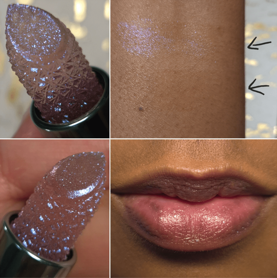 As seen in the swatches, the purple-blue-pink shimmer specks are an overspray. One swipe was enough to remove it completely from the slanted portion, and I can see that it’s clear from the inside, similar to the look of the Winky Lux Flower Lip Balms. I believe MAC’s formula is a little more complex and modern than those.