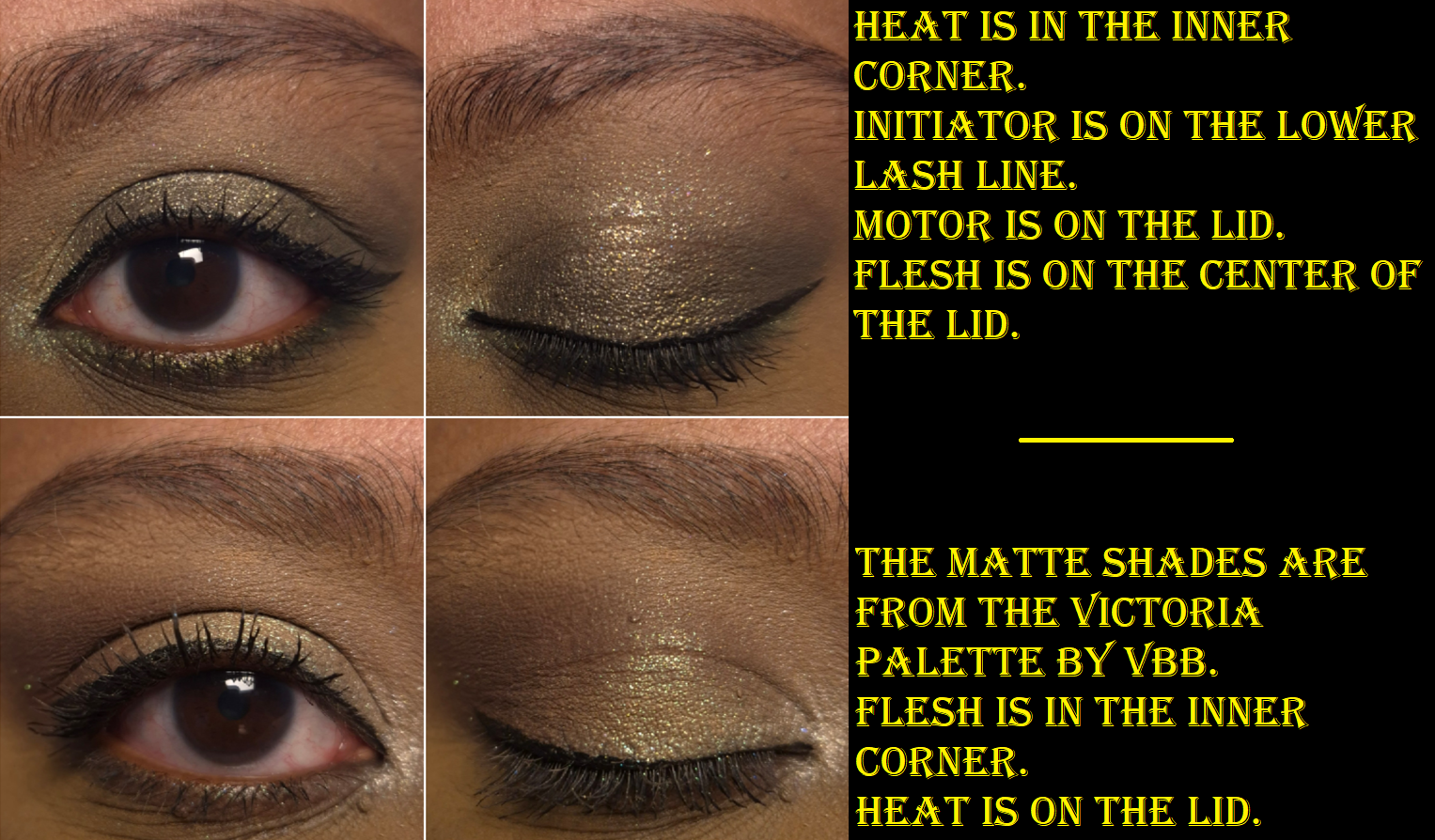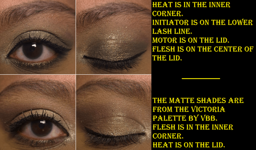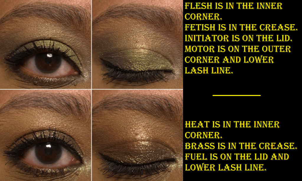 Fetish is described as a “pure ancient gold.” It’s a little less opaque than Initiator, but still less topper-like than the majority of the rest of the eyeshadows in this palette. It’s soft, a little powdery, and the darker base makes it a tad too dark for me to use as an inner corner highlight. It’s also thin enough to easily create a wash of color if a want, like how I used it in my crease in the first eye look below.