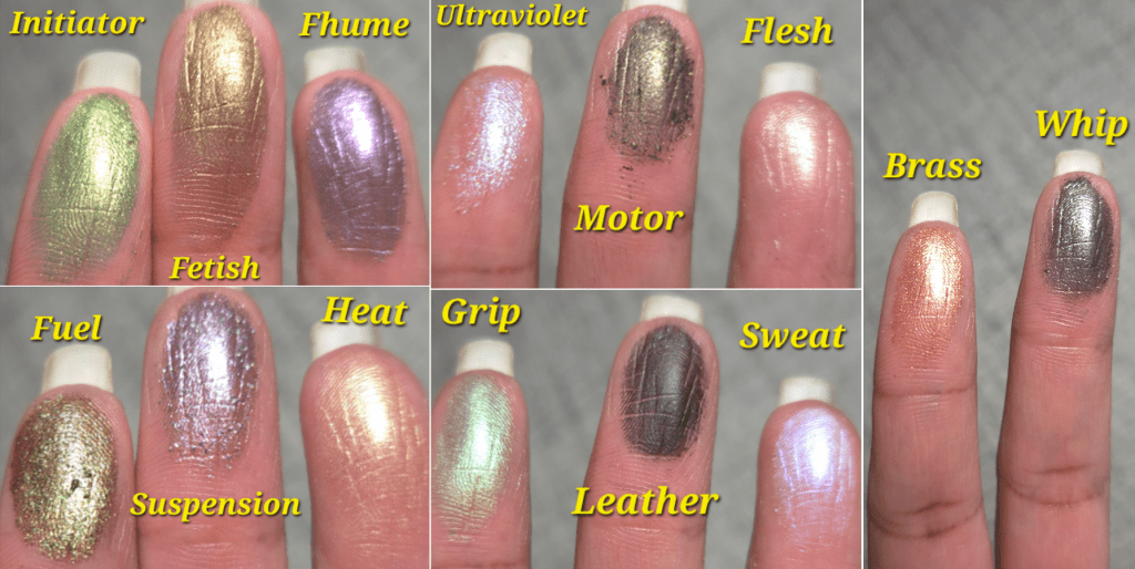 Grip is described as a grungy iridescent green. In the daytime, it looks magenta and green. At night, I have an easier time seeing blue and a cooler-toned purple as well. It’s quite sheer and also soft to the touch. It has a similar vibe to Viridian by Clionadh, which happens to be one of their most affordable shades in the Deep Iridescent Multichrome line. Grip has stronger shifts, but takes twice as many layers to build up to the same opacity level as Viridian. I still prefer Grip because it looks green head-on, whereas Viridian leans more aqua.