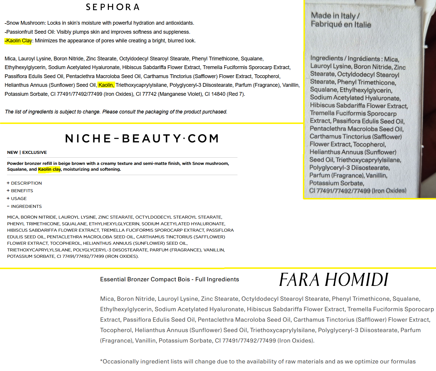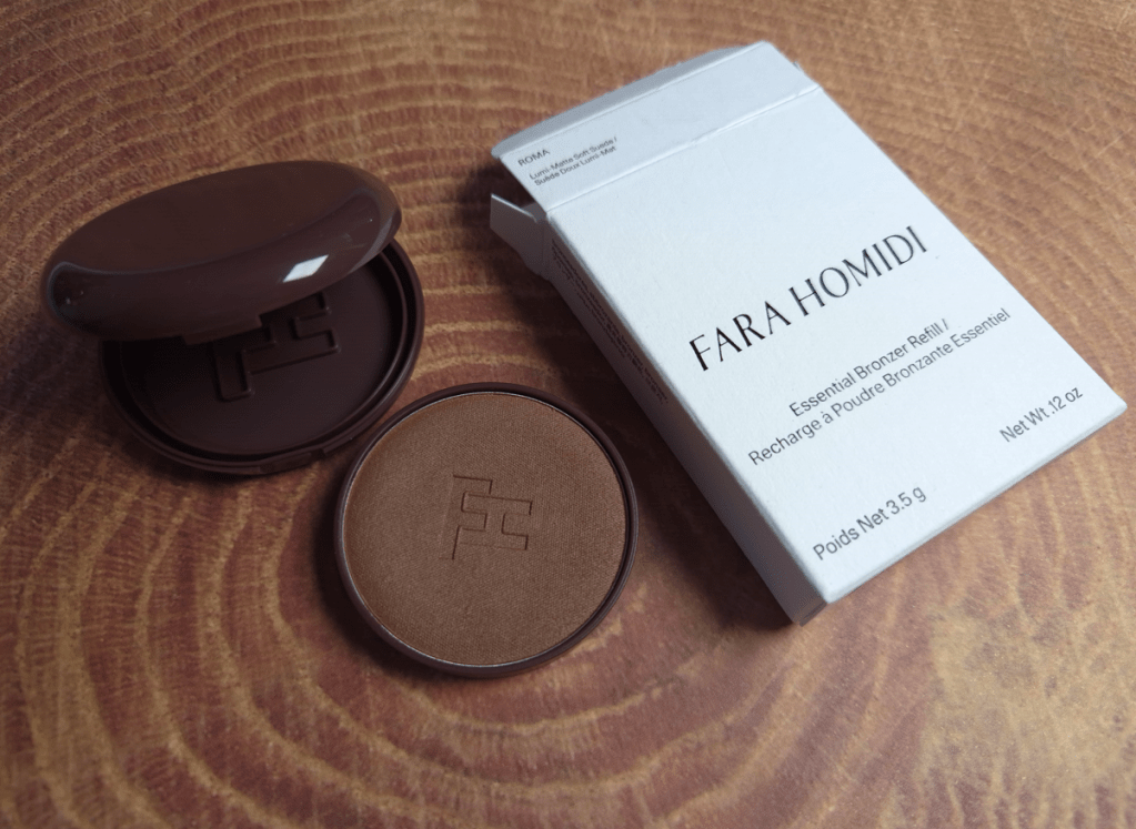 Aesthetically, I find the Westman Atelier bronzer to be more appealing. Shiny things get me. However, I still think Fara’s is classy and pleasing to hold in the hand. Her other products come in red and blue packaging of the same weight. I don’t like the red, but the blue is very eye-catching. If the next product she releases is in purple or green packaging, it just might surpass WA’s as a favorite compact for bronzers.