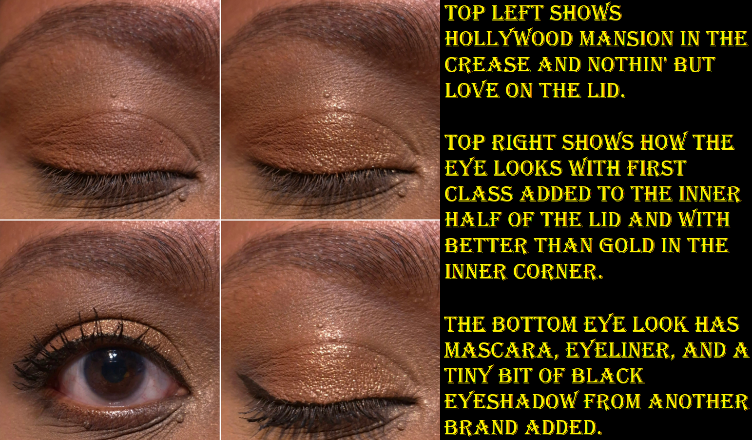 Posh is a Luminous shadow. It has the shine factor I want (once it is applied damp and/or with my fingers), but this particular shade has a hard time appearing pink (or mulberry mink) in tone on me unless I pair it with other shades in the same color family. This is not unusual for me when it comes to light pink shimmer eyeshadows looking more like a silver instead.
