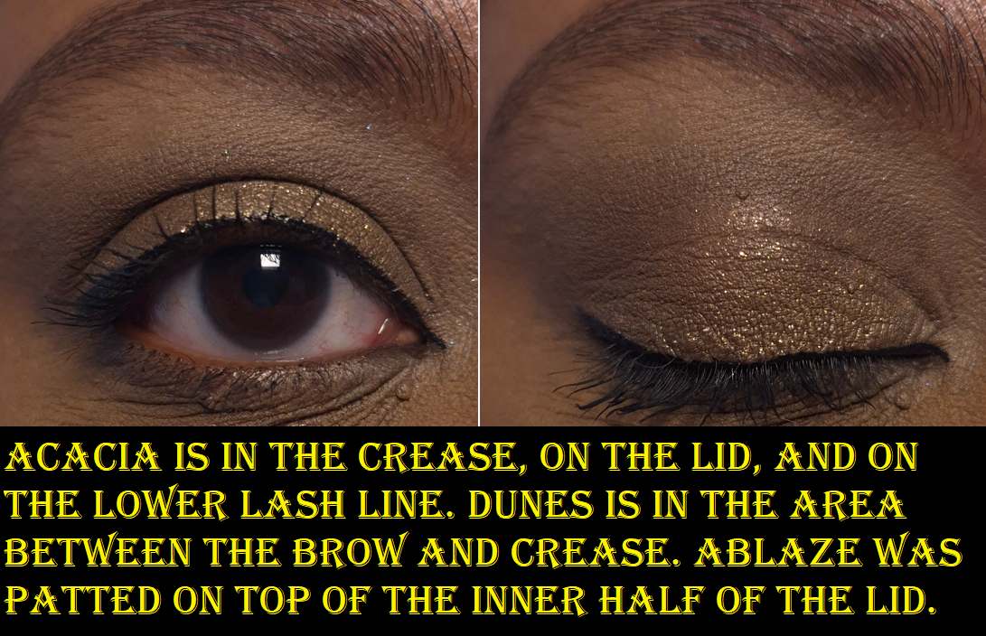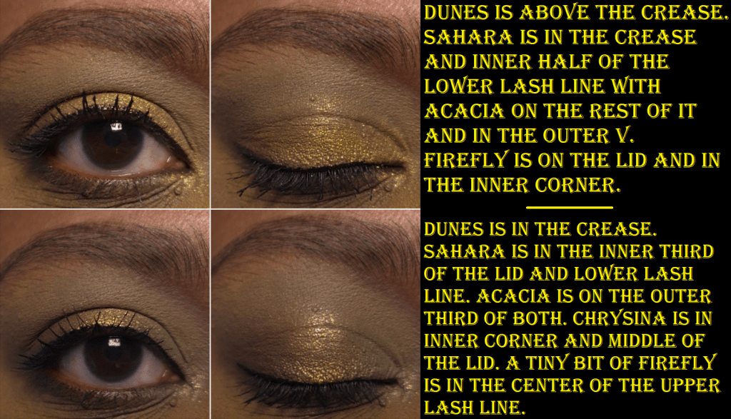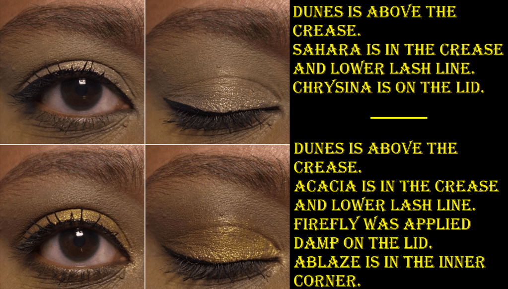 When applied straight from the pan to my lids, it has a scattered effect type of look. I cannot get an opaque application without applying the eyeshadow damp first. I think this is a good quality for a topper to have, so that it suits more people’s eye makeup preferences. I’m not the biggest fan of toppers, but if I can get one to show less of my skin or eyeshadow underneath, I’m fine with that.