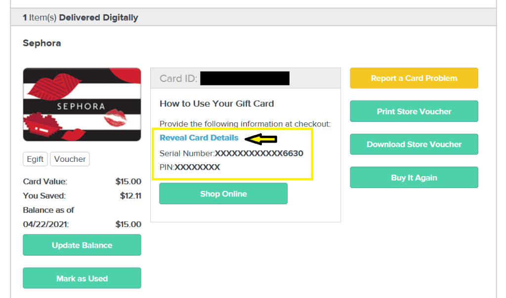 When I’m checking out at Sephora, I input the gift card details in the “Payment Method” section. If my subtotal exceeds the amount on the gift card, I can still add a second form of payment to cover the rest. If my subtotal is less than the amount on the card, I can use what’s leftover again later. That’s it!