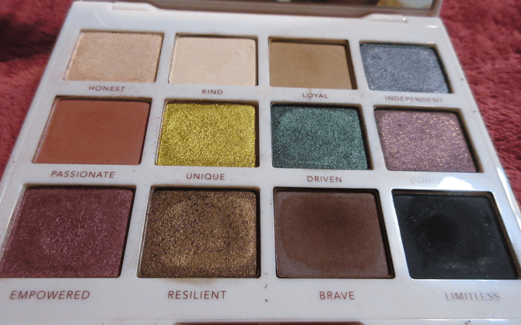 These are the shades I use the most in this palette and after nine months the shades haven’t gotten mixed up or messy and it looks barely used! There is so much product in each pan!