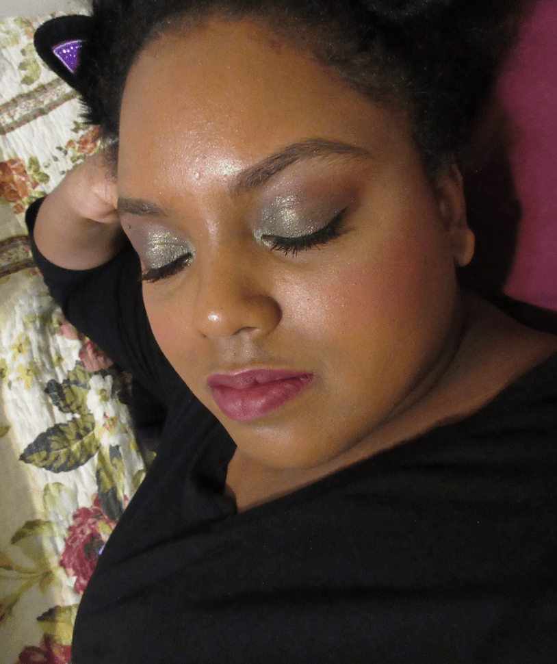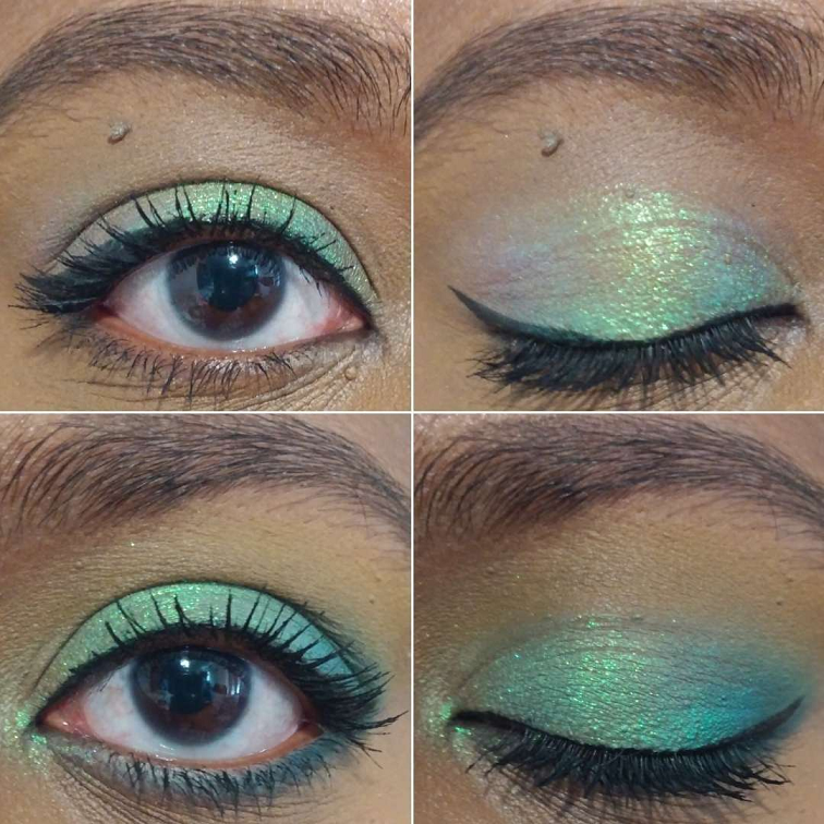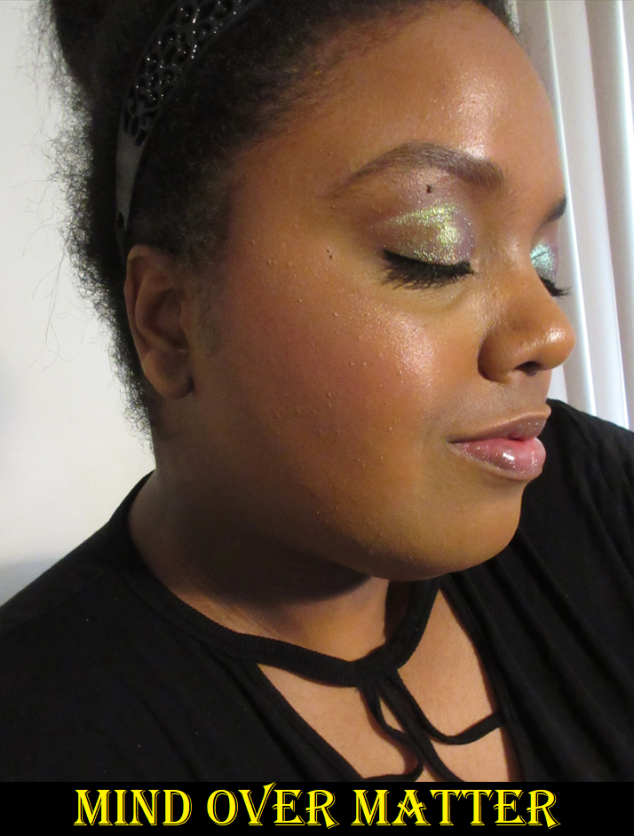 Another thing that will probably be less important to others is that Thorns looks so similar to Twilight in the pans that I got them mixed up in one of the eye looks I created (but did not photograph), and only realized it when the spot turned blue where Thorns and Twilight connected with Divine. Thorns by itself is more vibrant of a green than the other one, but also has a stronger blue tone to it. The ability to see it in the pan depends on the lighting.