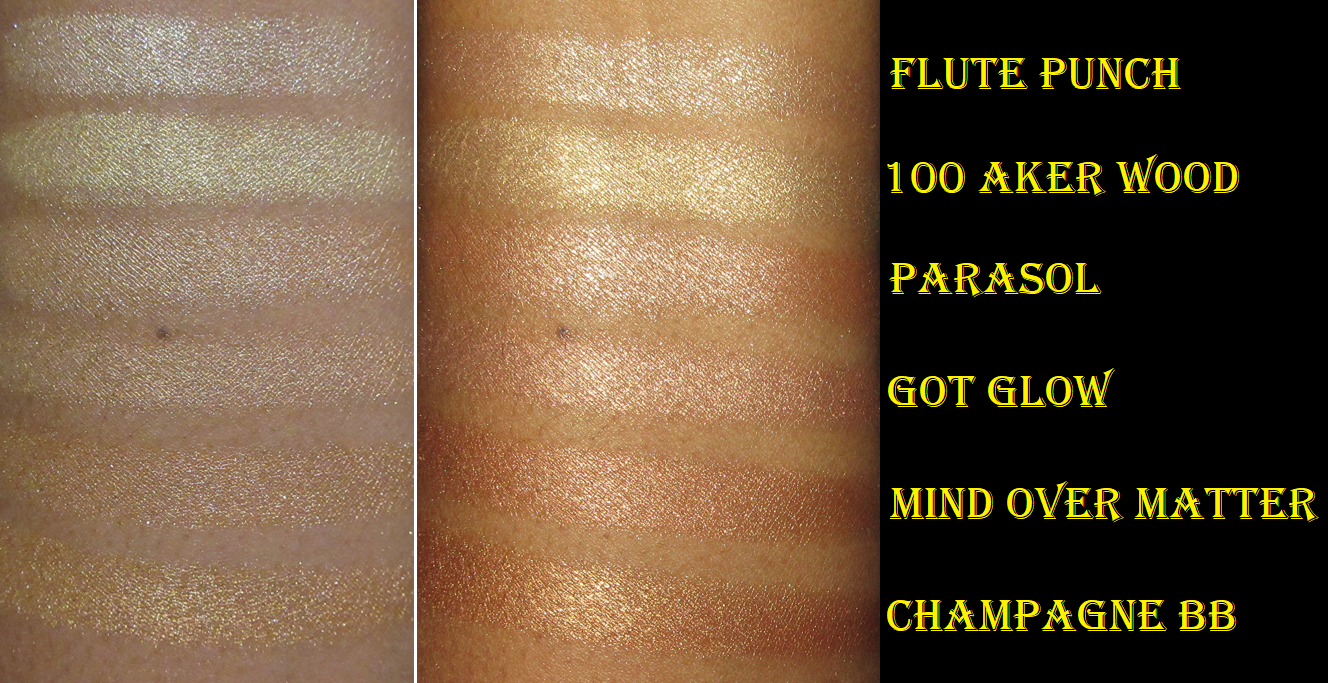 Dim Light (Finishing Powder) – Leopard, Swan, Many Others, Permanent Celestial Strobe Light (Highlighter) – Leopard Sun Beam (Blush) – Snake Burnished Glow (Blush) – Tiger Iridescent Rose (Blush) – Tiger, Leopard, Horse Lustrous Bronze Light – Leopard, Elephant