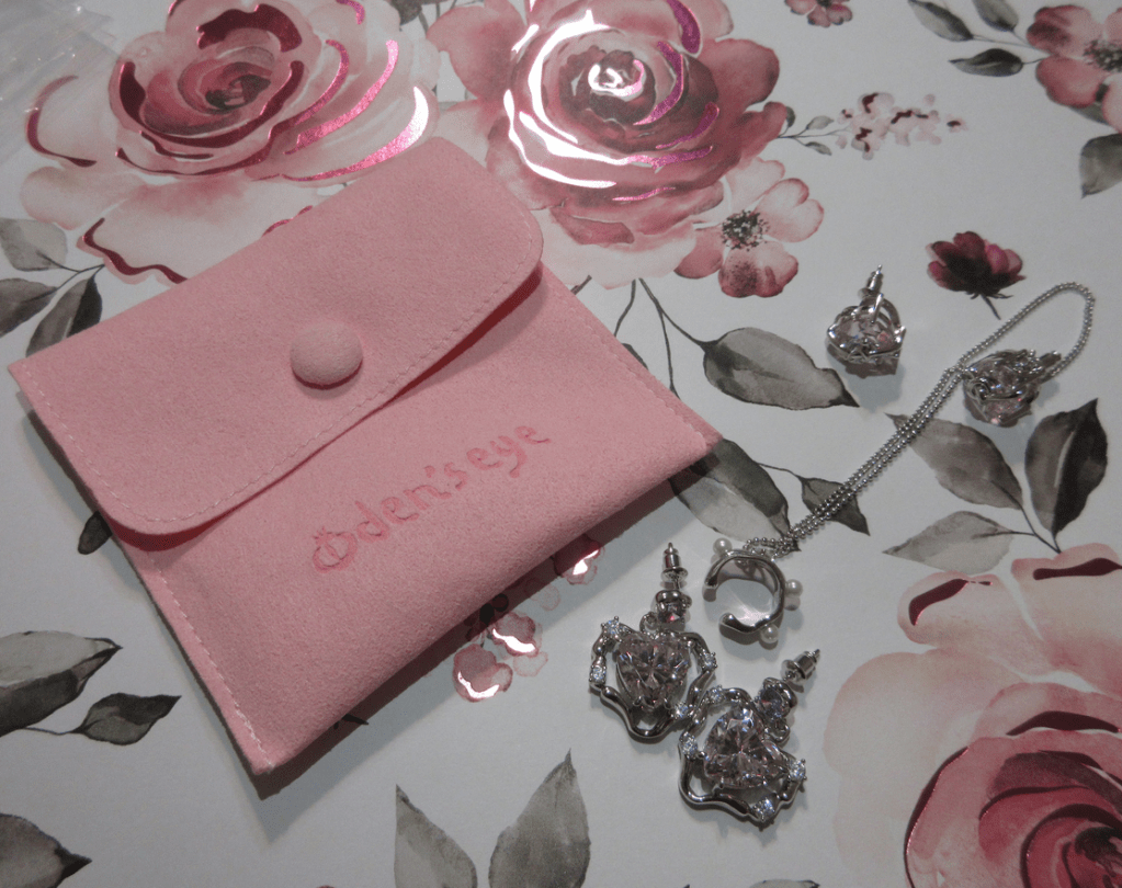 Unlike the pouch, this eye mask has a few flatback acrylic rhinestones embedded on it. They don’t feel like they would come off easily. I think they’re pretty secure.