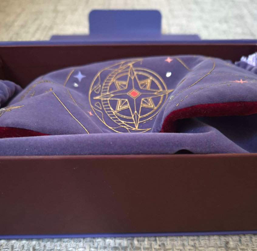 The first item I pulled out of the box was the “small” drawstring tasseled velvety pouch that ended up being larger than I expected. My rough estimates for the size is 23 cm high, 17-19 cm long as it gets a little wider towards the bottom, and 5 cm wide (9H x 7L x 2W inches).
