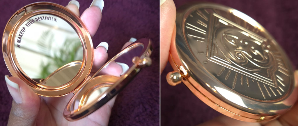 The most exciting item for me in this box was the compact mirror. It’s shiny, rose gold colored, and has a cool celestial design. My husband said something about an “Astrolabos Constellation,” which I guess is what this represents.