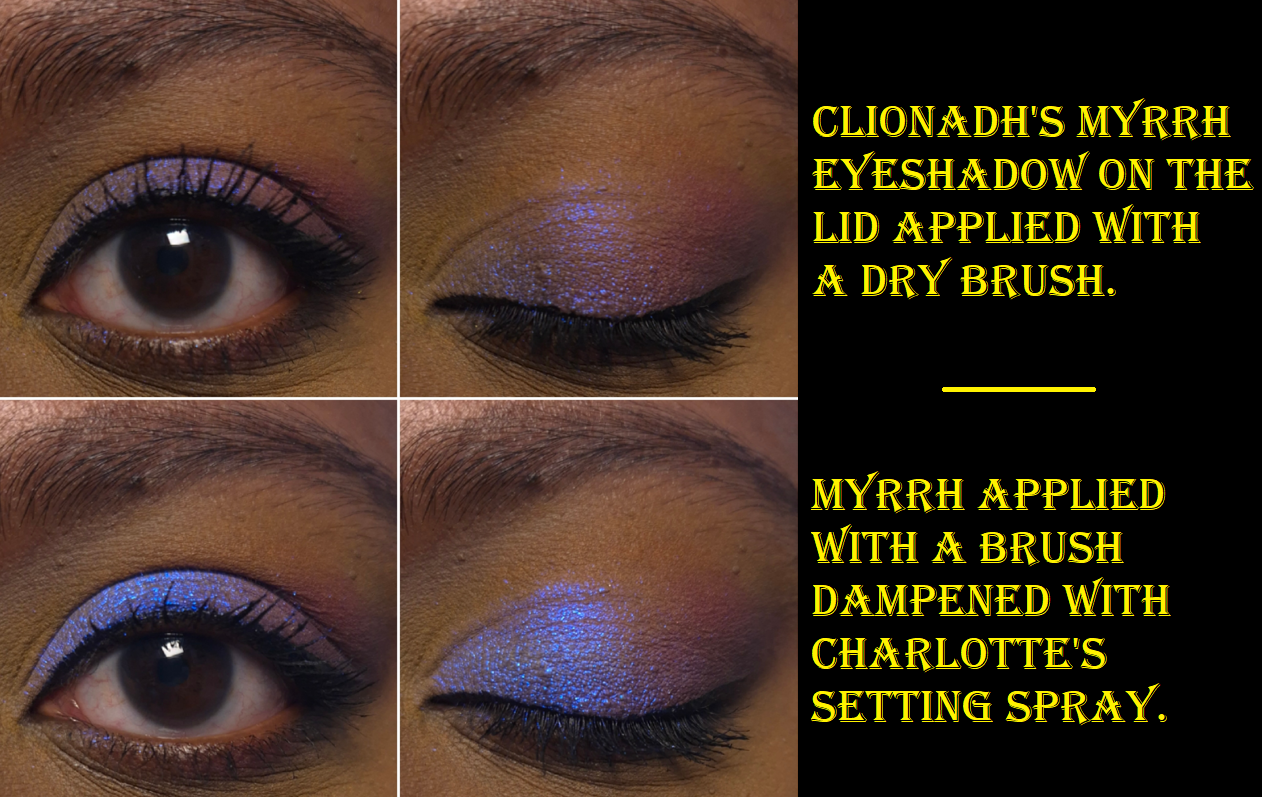 Devinah Cosmetics Multichromes are an honorable mention, as they also create beautiful shadows that are the closest to Clionadh’s quality that I have found between them, JD Glow, Terra Moons, Sydney Grace, etc. They have some fun and interesting shades that Clionadh hasn’t released yet, and although they don’t have Clionadh’s mirror finish, their metallic finish is still very enjoyable to use and look at.
