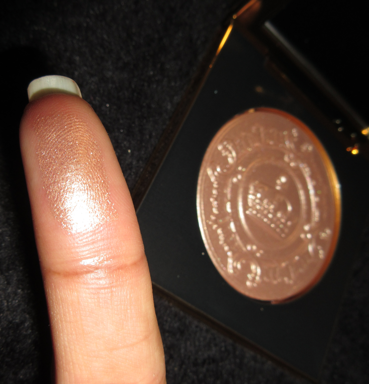 I couldn’t resist the gold packaging with that embossing, but I’m at least glad I waited for a sale. I told myself over and over that Lunar Nude would look too light for my skin tone, so I shouldn’t get it. I was half right. The shimmery reflective particles are light gold, but the base color is a copper color. It even looks copper or gold depending on the lighting of the room and the angle. The base tone helps it look a little more wearable on me, but it’s still lighter than I’d prefer in a highlighter.