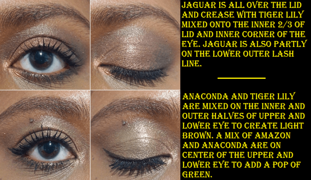 Sweet is the type of pale shade with a pink undertone I generally ignore in palettes unless it’s my only light/blending/highlighting shade option. Swarm will take the job of Sweet since it’s light enough and warmer, but even though it looks different in swatches from Keeper, on my eyes there is very little distinction between Swarm and Keeper. I could use them interchangeably. In swatches, it’s easy to see how Hive and Drip look like the same shade on me, with Hive just being a touch more yellow, though they’re both clearly warm toned browns. I believe these are intended to be midtone shades to add depth for those with skin tones lighter than mine, and I say this because these are too light to add any depth for my eyeshadow look. I could use these as brow bone transition shades because they’re still not far off from Swarm and Keeper. Sting is the only shade that I can use to create some shape but it’s still not dark enough for my taste. It’s darker than my typical mid-tone shade, but it’s also far from being as deepening of a shade as I want. So, I’ve come to realize that this palette doesn’t have as nice of a gradient for my skin tone as it would be for someone pale to maybe even light caramel. The mattes aren’t as pigmented as the Born to Run, but they’re still at a respectable quality and they’re blendable. I enjoyed using them, but to get the kind of look I prefer, I would basically have to use some variation of Swarm-Hive-Sting or Keeper-Sting every time. Regardless of the light to dark mattes I used, it would essentially turn out the same every time with just a different lid shade.