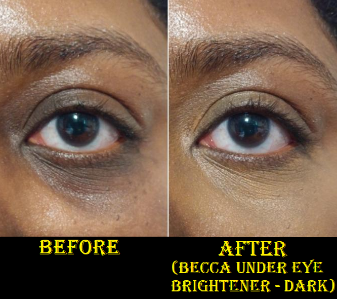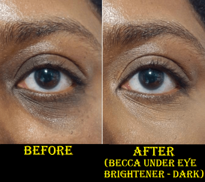 There were originally just two shades: light-medium (now called Fair/Light) and medium-deep. The Smashbox x Becca version has two more in the mix: Medium and Dark. It’s my understanding though, based on a YouTube video by All Beauty by Sarah, that the original medium-deep color is actually close in depth to the current Medium shade with the main difference being that the original had a stronger pink tone to it. The third darkest shade now is called Medium/Dark and is much darker than the original medium-deep. The final shade, and the one I picked up, is Dark. Based on the description and the shade in the pot, I expected Dark to be too dark for me. Technically, as this is supposed to brighten my under-eyes, I should have gotten Medium/Dark. However, I prefer for my under eyes to match the rest of my face rather than being brighter, so Dark works perfectly for that. It’s the best matching color-corrector type of product I have ever used because it has a slight orange tone to hide my dark circles, but there’s also enough brown to make it look natural. I try to avoid showing my skin discoloration as much as possible, but in this instance I felt it was necessary to show a demonstration photo below.