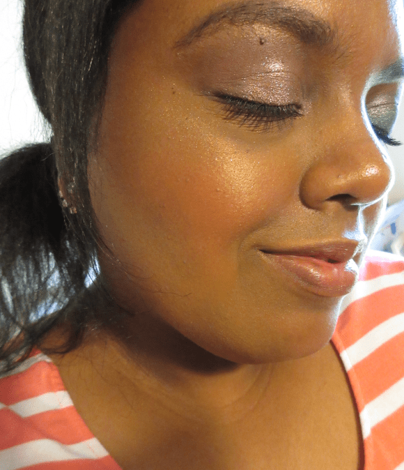 This product gives me a wet type of glow as opposed to the pearl/shimmer effect the others have. As a highlighter, it doesn’t disturb any products underneath. The fingers, brushes, and sponges all apply the product well, though I was surprised that the prettiest result was with a sponge. However, the result with the sponge wasn’t significant enough that I would switch out of using brushes.