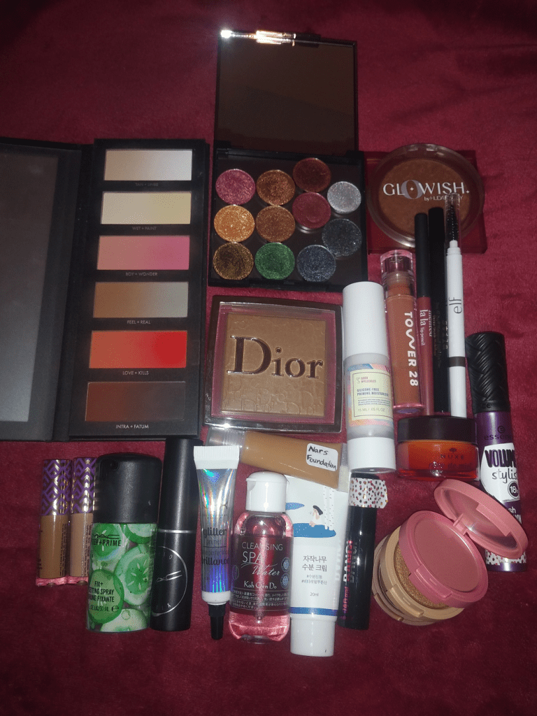 When I was deciding what to pack, the first thing I did was write a list of all the makeup categories I could think of and filled out which products I would want to bring most. Then, in order to condense the list, I went back over my answers and thought about what things I owned that could accomplish more than one task to reduce the number of products I had to bring. I thought about which things I owned or could buy in mini sizes to save space and decrease the weight of what I’d have to carry. I kept in mind which items were easily breakable, replaceable, and what I would miss too much if I didn’t have it. I also debated about what items I could just skip bringing entirely and buy while abroad. One thing I forgot to consider was that even though I was leaving a lot of makeup behind in Germany, all the new products I purchased weighed so much more than what I initially took with me, so my makeup bag was heavier coming back. I could have skipped bringing the Kaja Bento as a backup if I thought about the fact that I was going to buy a highlighter and three blushes.