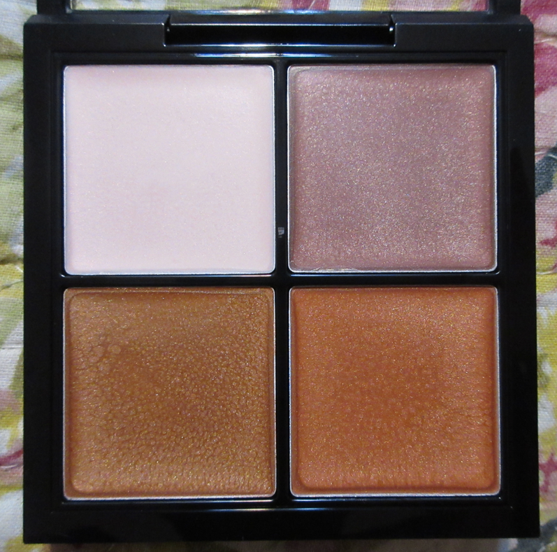 This palette consists of cream highlighters that have an almost waxy texture. It reminds me of both edge gel and the Danessa Myricks Dew Wet Balms. I didn’t have high hopes because products in that consistency tend to remove my foundation underneath it, and this one did too, but it’s easy to apply a little concealer back on top without interfering with the shine level. Unlike the Dew Balm, this gave a perfectly smooth wet sheen without looking greasy. It doesn’t dry completely, but it’s not dewy enough for my hair to cling to it either. I was very happy with the results! It also makes a great base to intensify powder highlighters that are applied on top of it, although I don’t usually go for the super highlighted look. Powder highlighters are my preference, so I don’t know how often I’ll actually use this, but it certainly made a nice birthday gift!