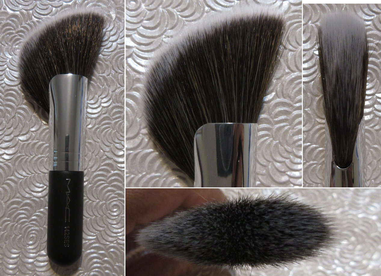 I didn’t have high expectations for this brush, but it actually surprised me! The more deeply shaped and intricate the embossed pans are from MAC, the harder it will have been pressed. That makes the top layer a bit tougher to pick up product from when using softer bristle brushes. This one feels soft, but the strands themselves are strong enough to really dig into the highlighter while still dispersing the product softly across the skin. Rather than following the direction of the brush, I swirled it roughly in the pan in a circular motion to get the most product pickup with the least effort. I’ve used this brush enough times that it softened the surface of Sparkling Wine, so I can now pick up the product with my natural hair brushes. Prior to that top layer being broken into, it was extremely difficult.