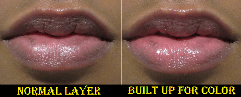 This is one of a few items I redeemed as a free birthday gift from MAC’s Reward Program. It’s a sheer product in a soft formula. The top layer of the bullet instantly melts when it touches my lips. If I apply the amount of balm to my lips based on how it feels, I get almost no color. I can build it up to show a pink tinge, but the amount I need to apply for that leaves my lips feeling excessively wet in a way that isn’t quite greasy or oily, but it’s a similar enough sensation that is uncomfortable for me. After I wear it for a short time, it gives me the feeling of dripping around the edges and a strong urge to wipe it off.