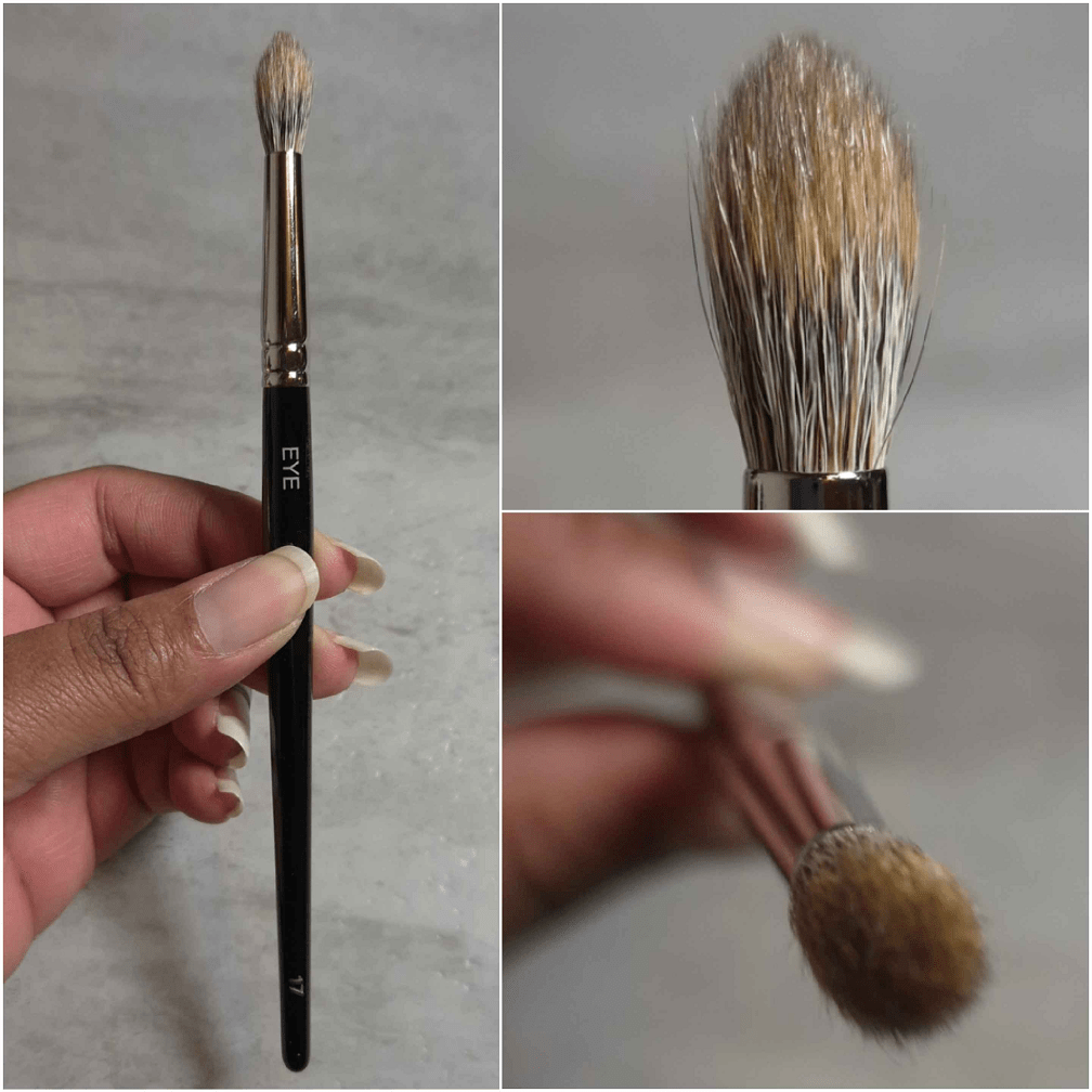 Through prolonged use, this brush is a little fluffier in width, so the point doesn’t look as pronounced. However, I’m still just not a fan of this brush purely due to the shape. I like my tapered blending brushes to be rounder for a wider area of blending pressure. When it’s pointed like this, the strongest pressure is mainly at the highest point in the center, which means it takes longer for me to blend with that smaller surface area. I see how it’s supposed to be useful for getting in the crease for hooded eyes, but then I prefer to just use a smaller brush in the shape I like, such as the Sonia G Mini Booster. I find myself repeatedly squashing the Eye 17 into my skin to try and increase the pressure to increase the blending power. Every time I’ve used this brush, I wished to swap it with something else.
