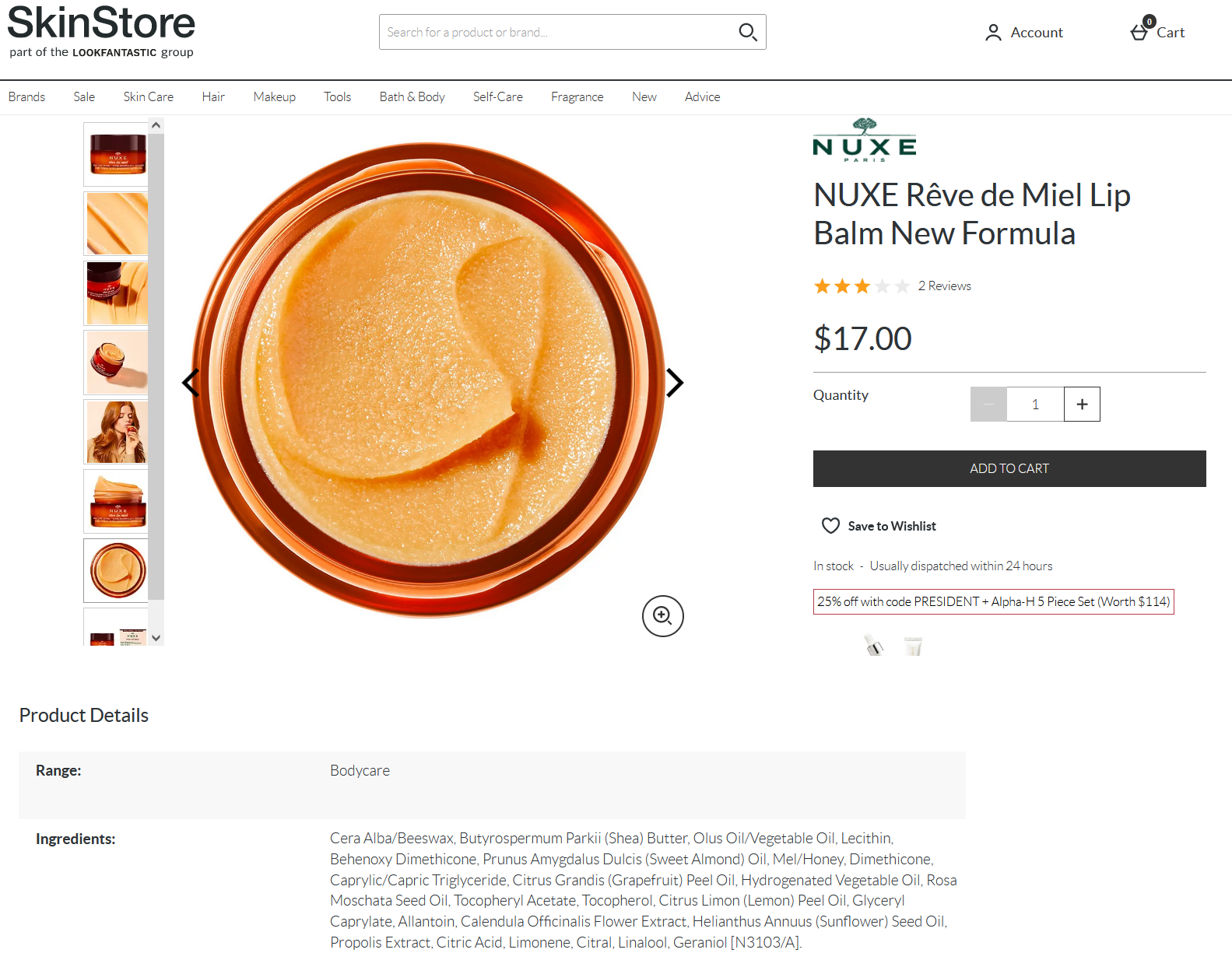 This could explain why my current backups aren’t lasting very long if Nuxe removed one of or possibly the only preservative. For me, the formula change makes this a tiny bit less effective than it used to be, but my biggest issue is the length of time these last once opened. Even if I could overlook all that, the texture of this new reformulated balm shown on the website looks so ridiculously grainy. Thankfully my backups don’t look like that, but I can no longer recommend this balm. I will continue to use up what I have and love them while they’re still good, but it’s such a shame because the way this locked in moisture on my lips was unrivaled.
