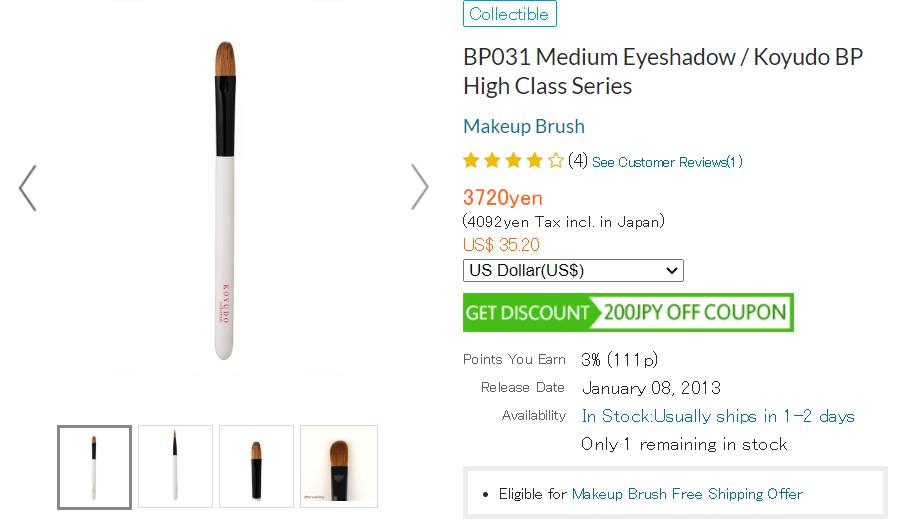 Even though this brush says Weasel, not Kolinsky, I was unable to get this brush shipped to me a month ago either. Between the two brushes, I’d rather get the BP031, so if it’s in stock during my next CDJapan order, I’ll definitely be adding one and updating my original Fude post with a mini review!