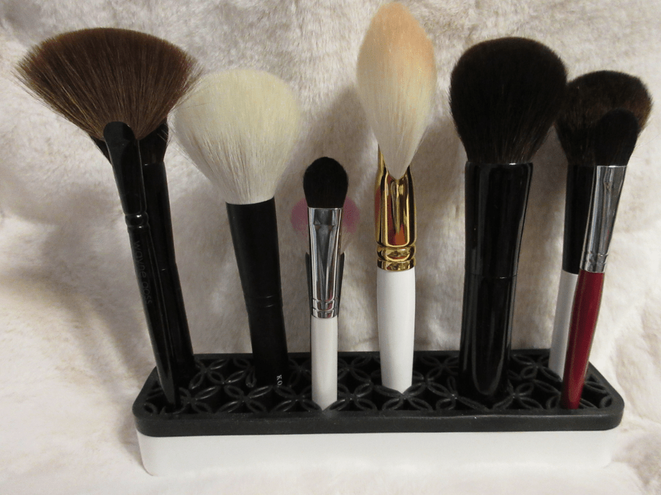 I realized that my brush holders, although beautiful, weren’t very good for my large brushes, as they leaned on one another and the bristles kept getting misshapen. I bought this box to at least house my most expensive brush, the MK-KO, but laying it flat was encouraging the flattened shape that I don’t particularly like. It houses my Wayne Goss Large Artist brush instead. For my other brushes, the item below was necessary.