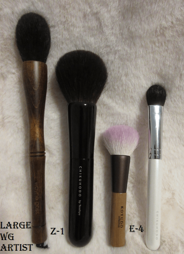 I specifically remember that when I bought this brush, the Z-series brushes from Chikuhodo were listed as grey squirrel on Beautylish’s website. They now say blue. From what I could find, it is only Koyudo squirrel hair brushes that are listed as grey on their website now.* I’m not sure if that was the company’s decision or if Beautylish wanted to differentiate between Chikuhodo and Koyudo, since Koyudo is generally less expensive among the comparably sized brushes. Other retailers like CDJapan and Fude Beauty still have the Z-series listed as grey squirrel as well.