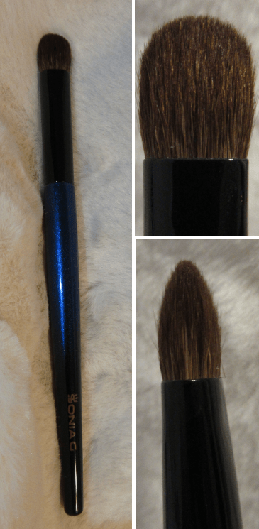 This reminds me of the Hakuhodo J5523, but it’s a bit fluffier. It works well to pack on eyeshadow but I sometimes use it in the crease as well to apply and blend transition shades. Among all my Sonia G eye brushes, I get the least use out of this one. I tend to just use my multi-tasking eye brushes to complete a look.